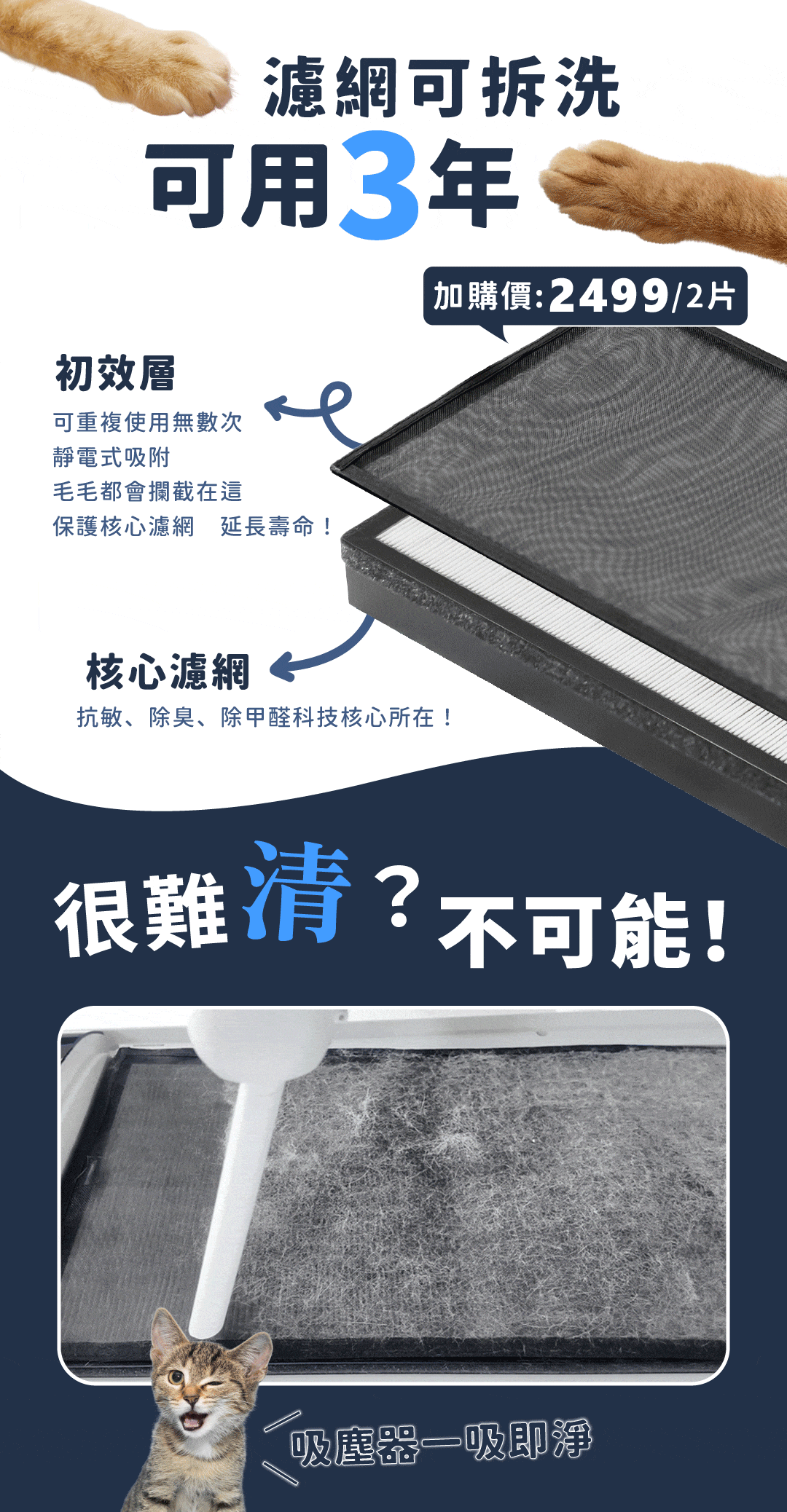 13倍巨幕吸毛面×雙渦流,一開機肉眼飛毛即吸!過敏原、臭味、PM2.5、甲醛都達頂級濾淨,可清洗攔毛網,讓你省錢同時享受頂級清淨!