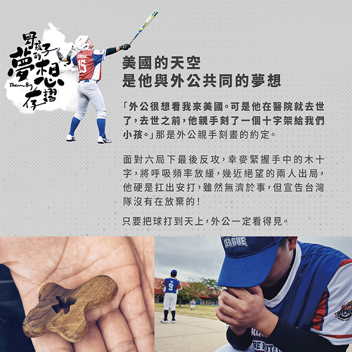 「出國比賽」是很多運動員的夢想,可是對於來自棒球偏鄉的孩子來說,看見窗外的世界是一種甜蜜的負擔,卻又想勇敢地掌握自己未來。