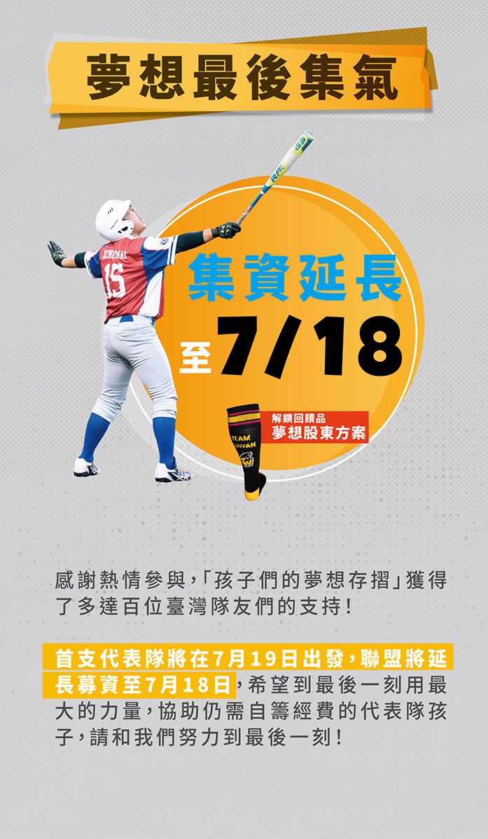 因為有超過上百位臺灣隊友們的支持,臺灣貝比魯斯聯盟的5支代表隊,他們追求夢想的故事和初衷被更多人看見,出發在即,聯盟希望努力到最後一刻~