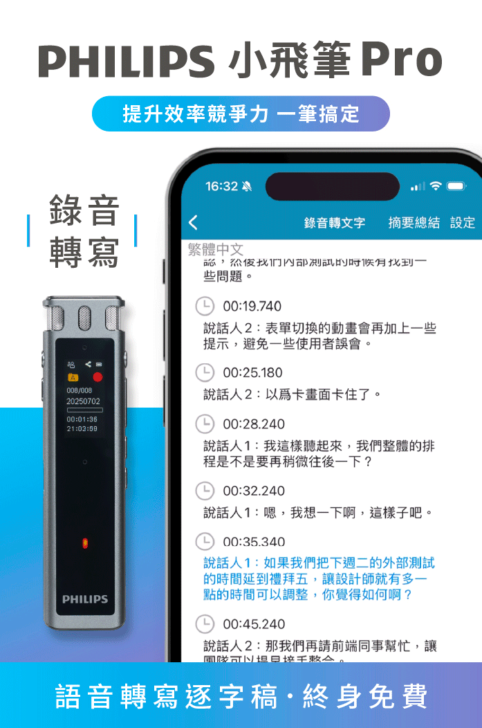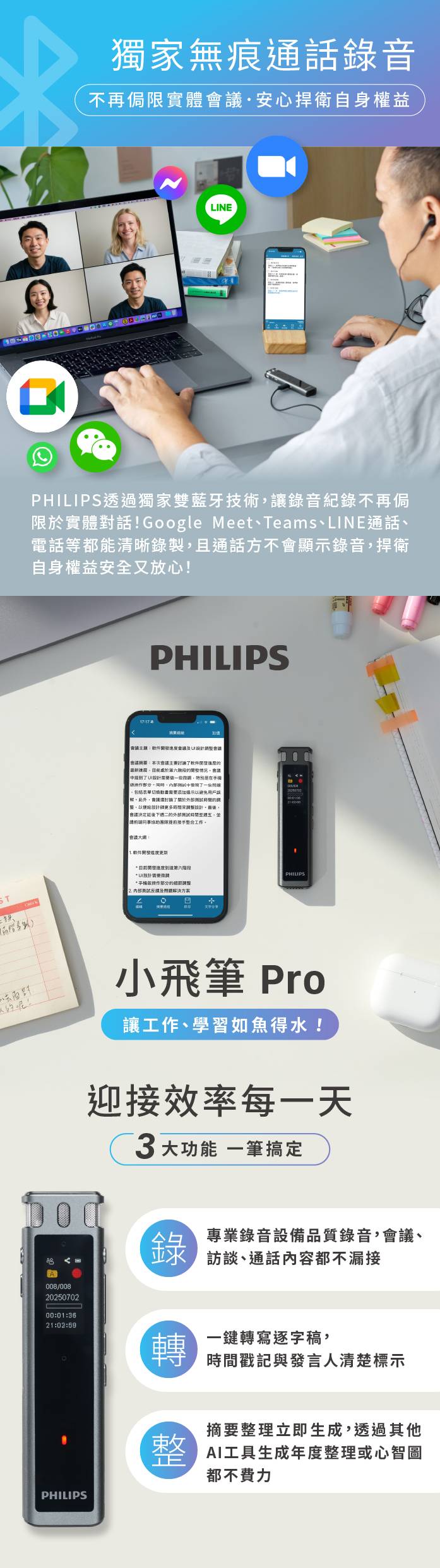 PHILIPSX旺德電通攜手打造專業級錄音設備 AI 錄音筆,獨家升級『無痕通話錄音』,擺脫實體會議的限制,隨時來電都能輕鬆紀錄!