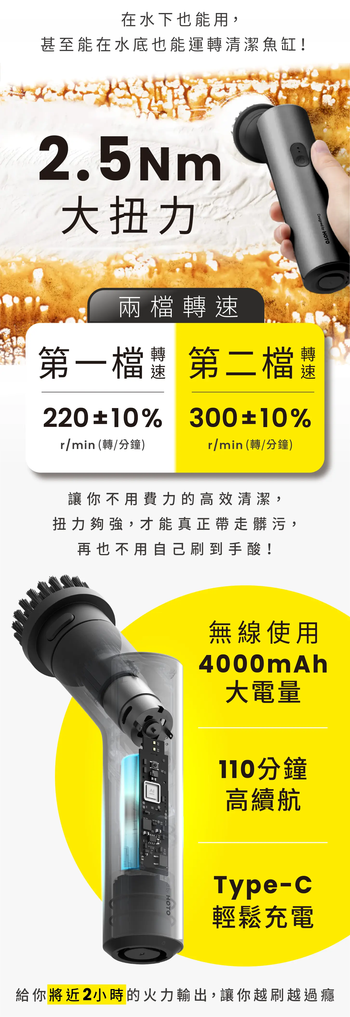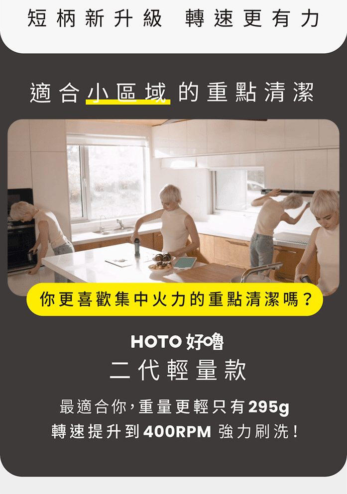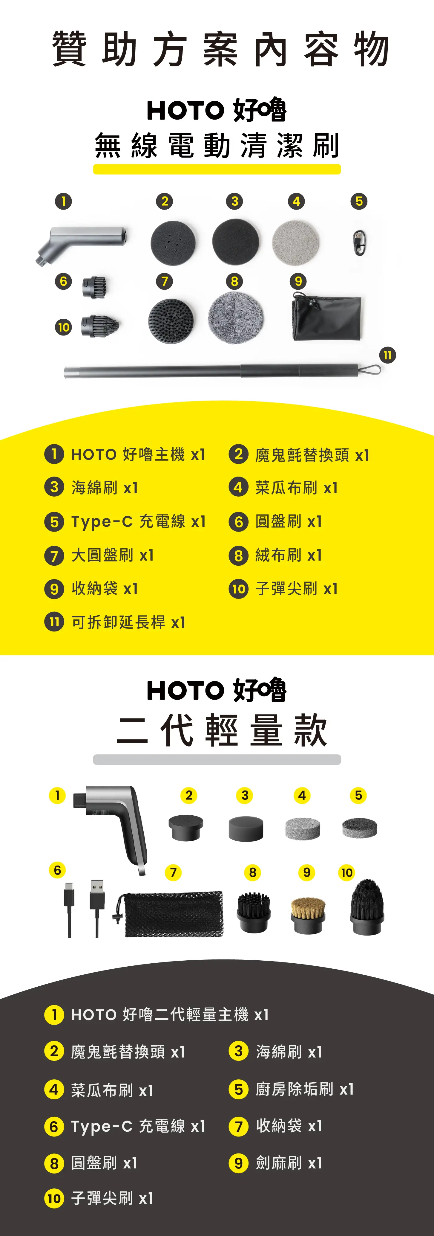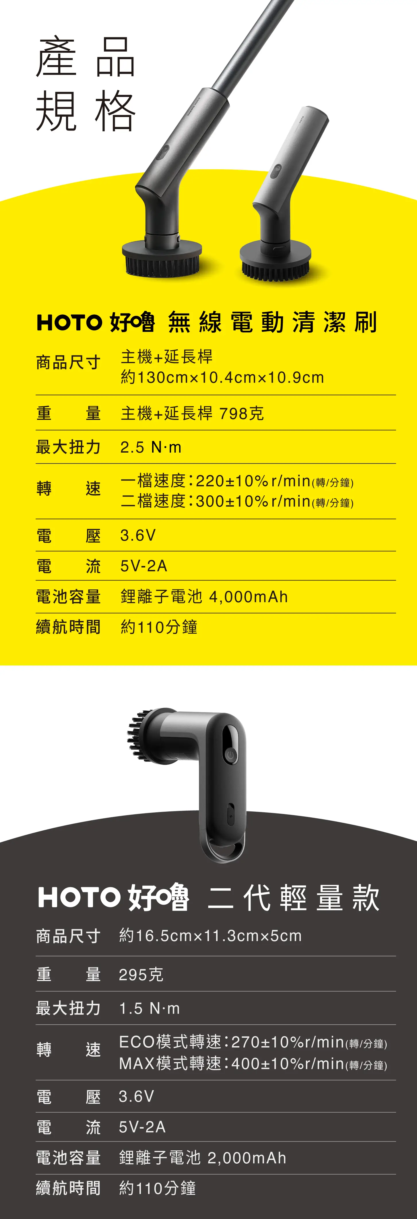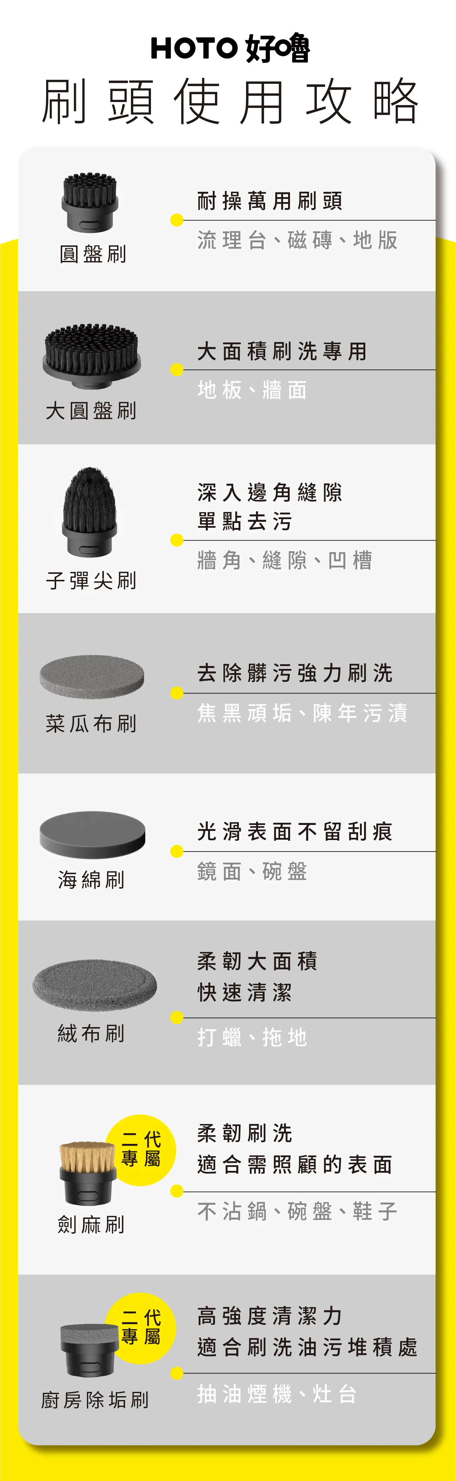 【 HOTO 好嚕 無線電動清潔刷 】是一款全自動、可伸縮的無線清潔刷。配有6種不同的刷頭,幫你擊潰所有在家的髒髒威脅!