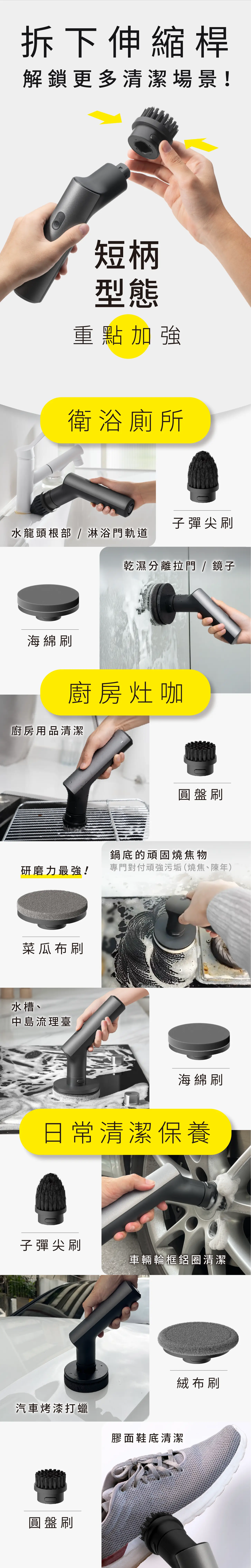 【 67 折優惠|現省 $1,700!】 包裝內容物: *圓盤刷|大圓盤刷|子彈尖刷 *海綿刷|菜瓜布刷|絨布刷 *魔鬼氈替換頭 *Type-C充電線 *可拆卸延長桿 *專屬收納袋 ✅ 分期 三期零利率 ✅ 期間享全台免運 ✅ 產品保固一年