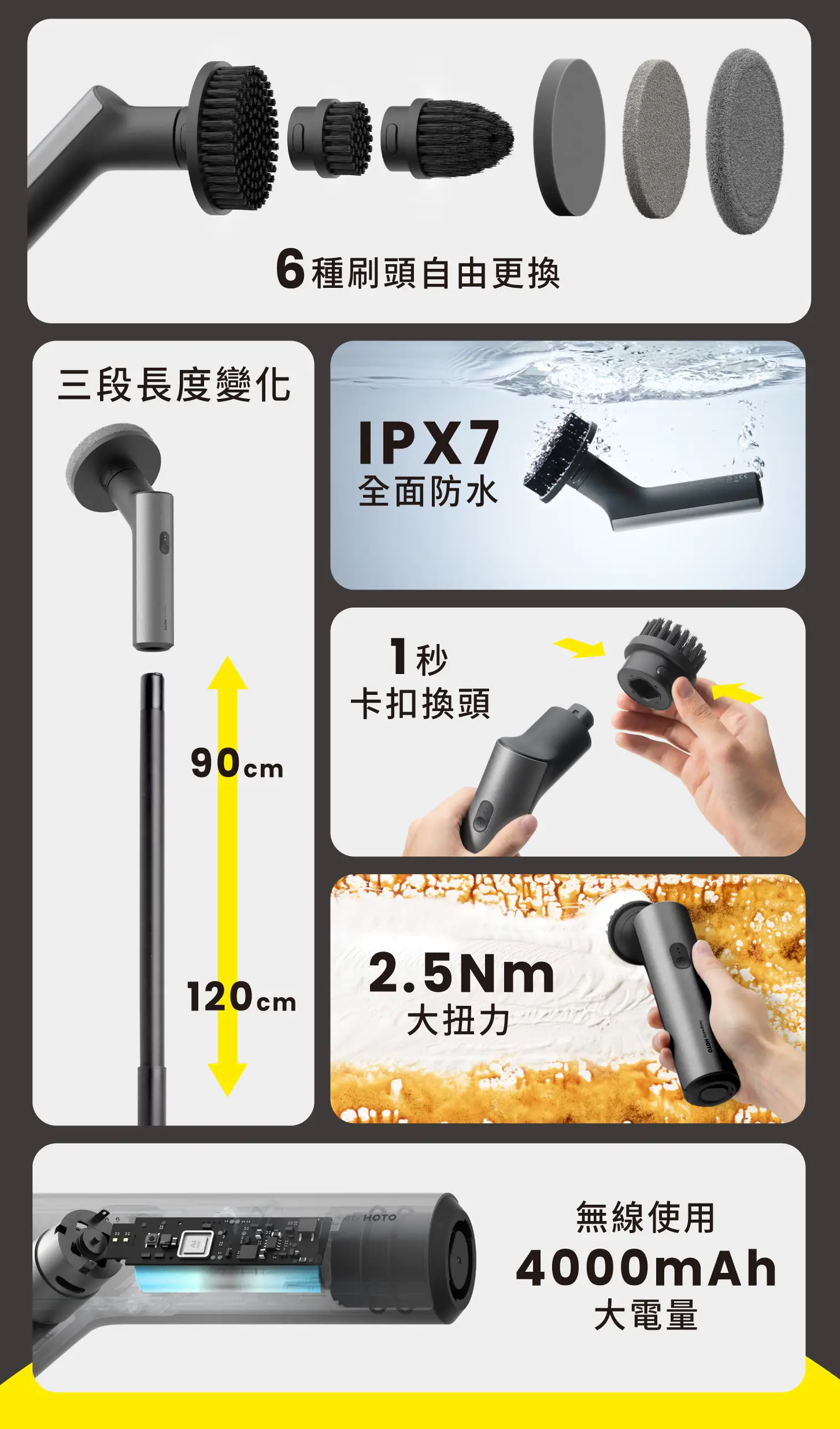 ✨ 九月搶先出貨體驗方案 【 56 折優惠|現省 $2,300!】 包裝內容物: *圓盤刷|大圓盤刷|子彈尖刷 *海綿刷|菜瓜布刷|絨布刷 *魔鬼氈替換頭 *Type-C充電線 *可拆卸延長桿 *專屬收納袋 ✅ 分期 三期零利率 ✅ 期間享全台免運 ✅ 產品保固一年