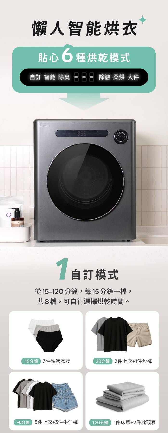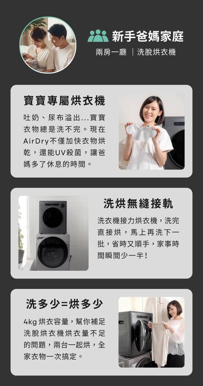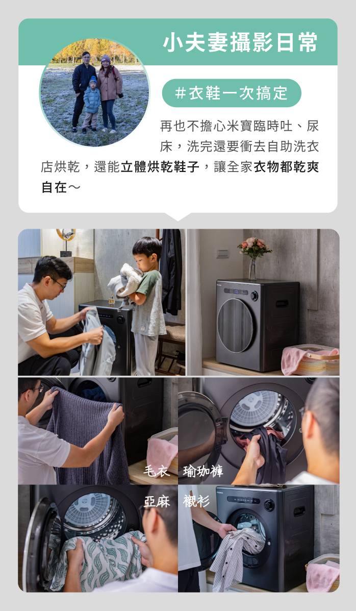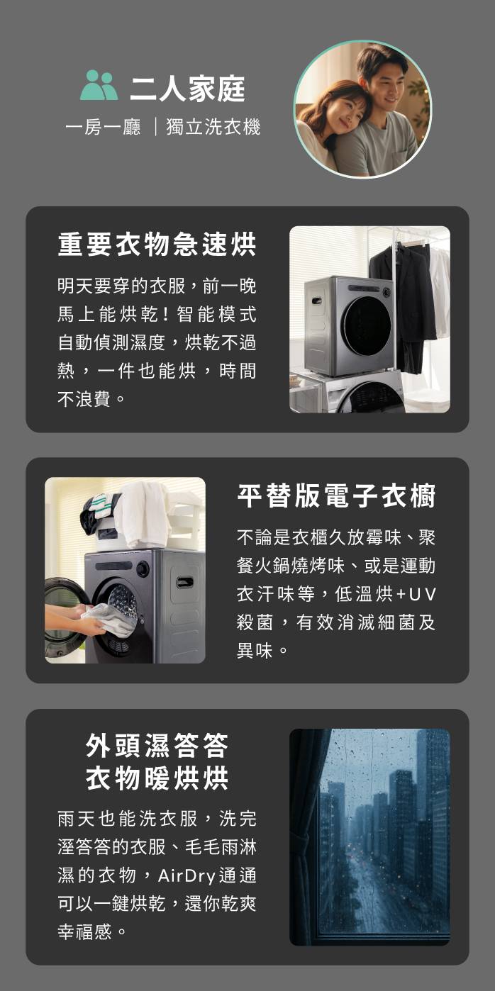 4KG 大容量,四口家庭也沒問題,輕巧體積設計,一人也能輕鬆搬起,家中角落、閑置空間都放得下。從此不必再晾衣,和潮濕悶臭說掰掰!