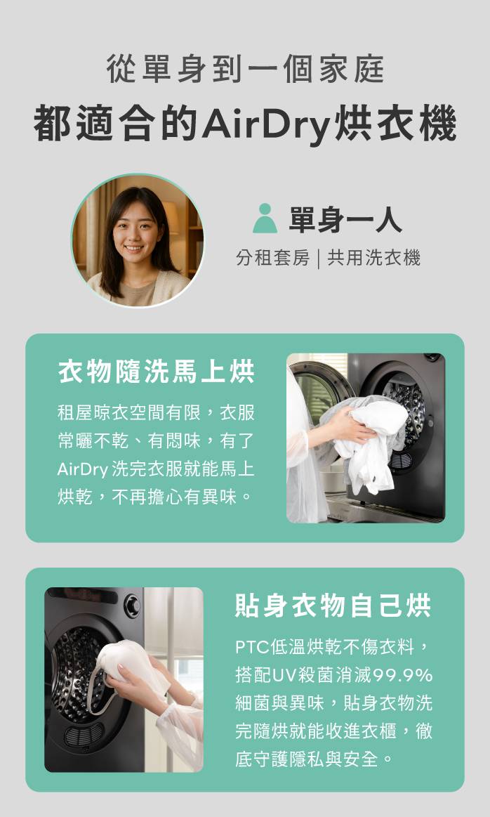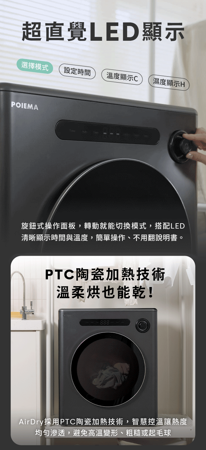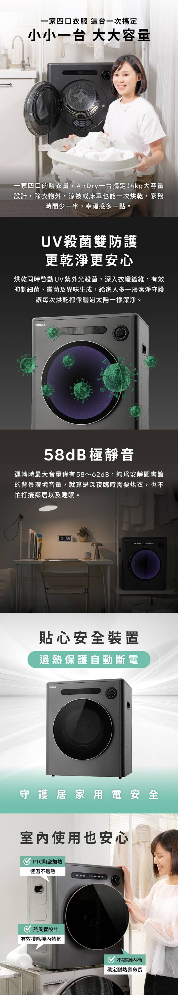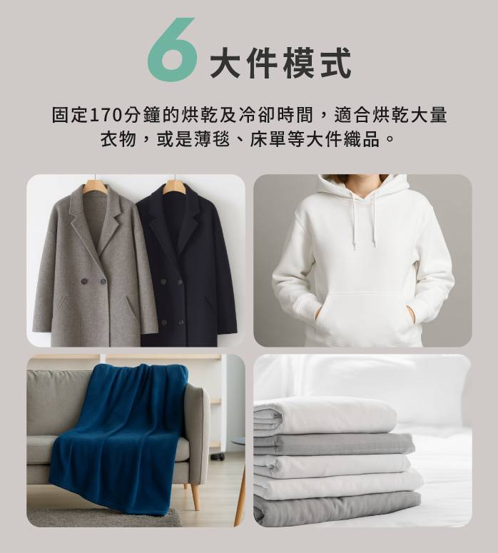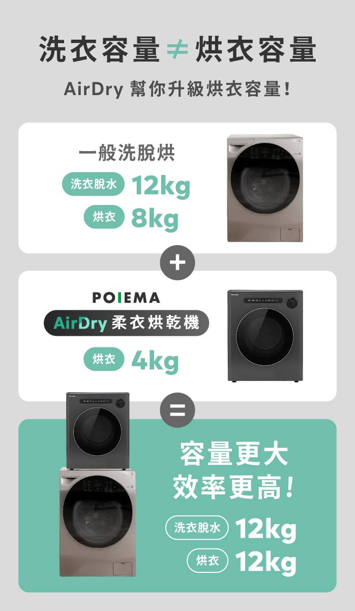 4KG 大容量,四口家庭也沒問題,輕巧體積設計,一人也能輕鬆搬起,家中角落、閑置空間都放得下。從此不必再晾衣,和潮濕悶臭說掰掰!