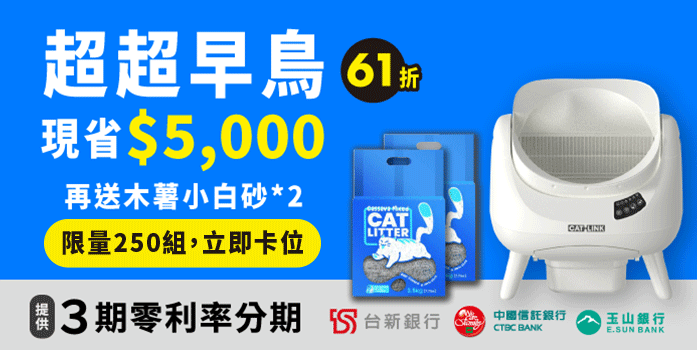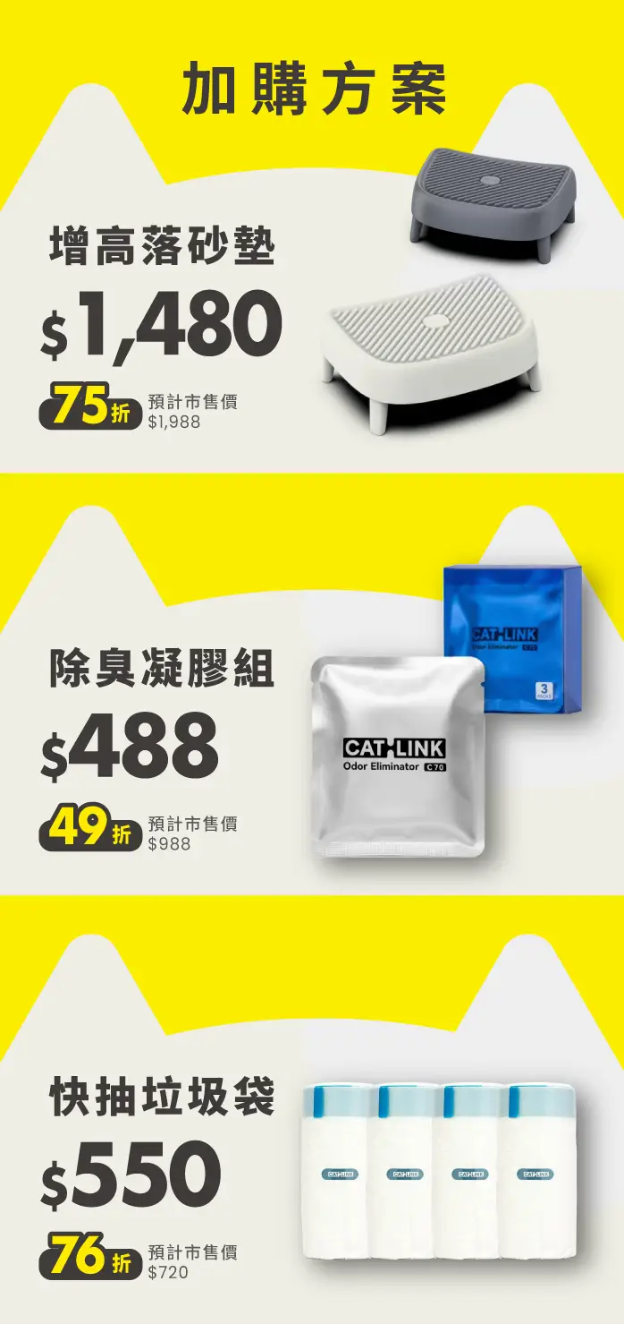 募資限定方案|現省 $3,000 ✅ 包含: 垃圾袋 1 捲(20只) 全防墊*1 除臭盒+除臭凝膠*1 使用說明書 🎁 加碼贈送: 木薯混合小白砂*1