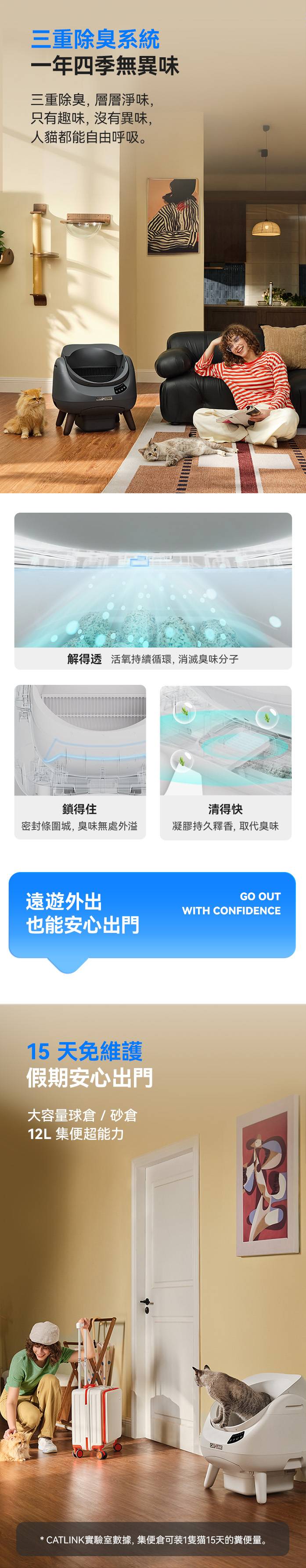 ✅ 360º 環景視野 ✅ 12L 超大集便倉 ✅ 加大空間球倉 ✅ 創新防夾結構 ✅ 三重高效除臭 ✅ 三步輕鬆拆洗