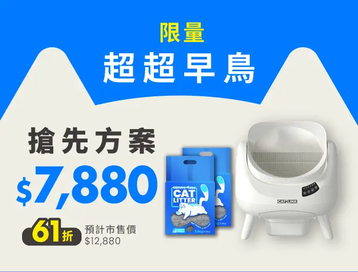超超早鳥單入方案|現省 $5,000 ✅ 包含: 垃圾袋 1 捲(20只) 全防墊*1 除臭盒+除臭凝膠*1 使用說明書 🎁 加碼贈送: 木薯混合小白砂*2