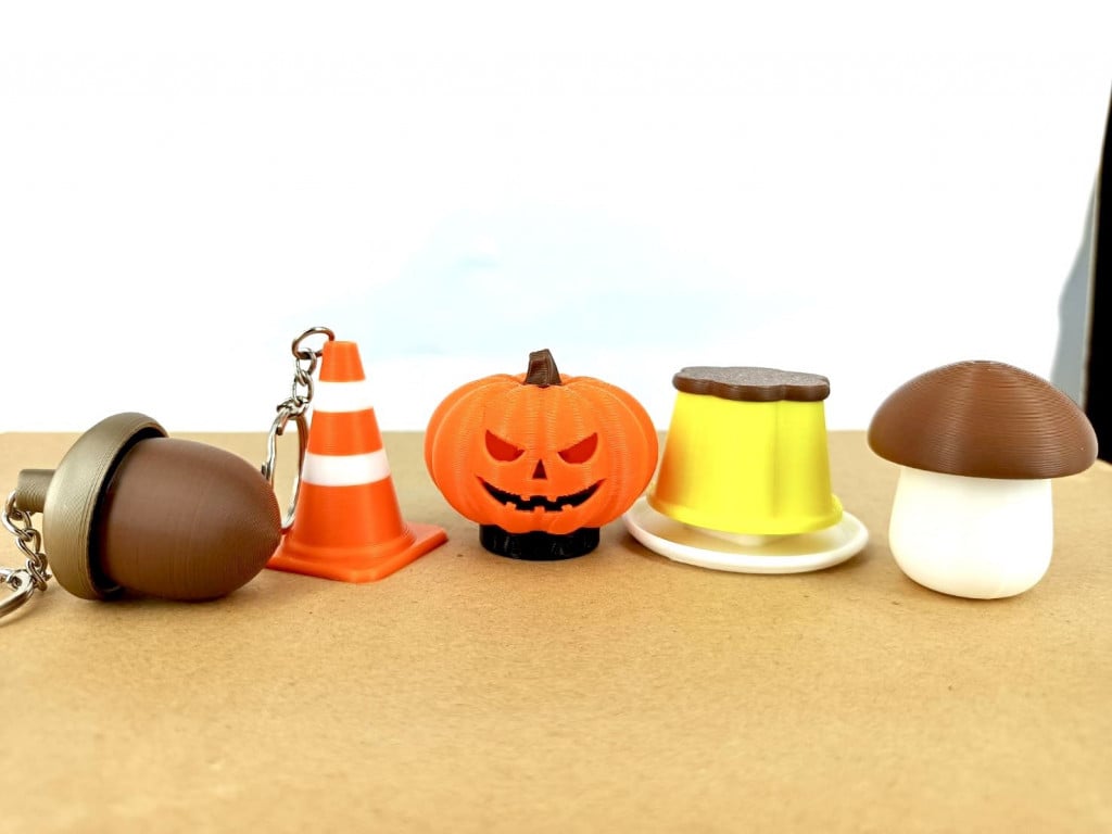 橡果、南瓜、布丁、香菇、三角錐五種造型