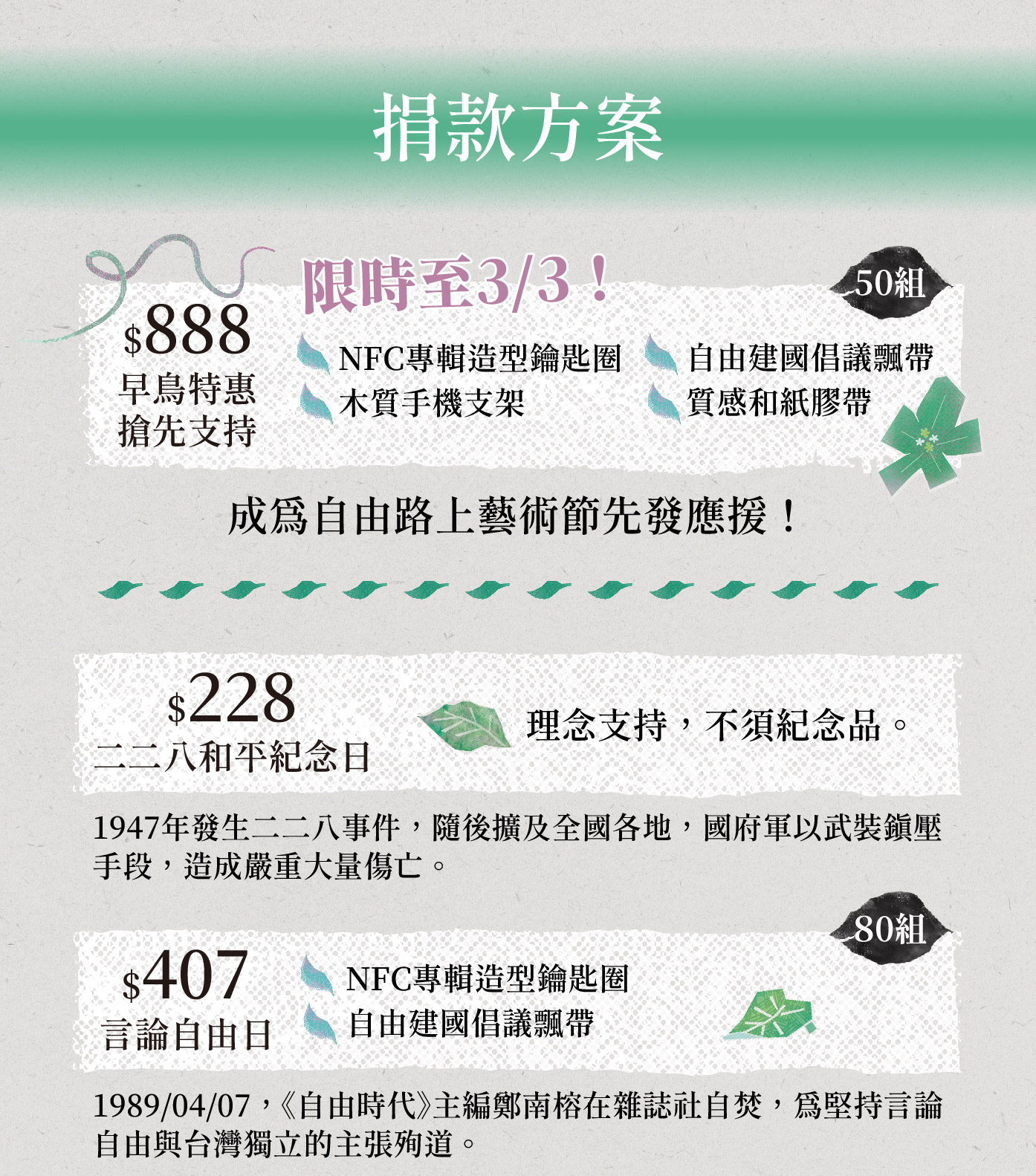 早鳥特惠限時只到3/3,搶先支持,成為自由路上藝術節先發應援!