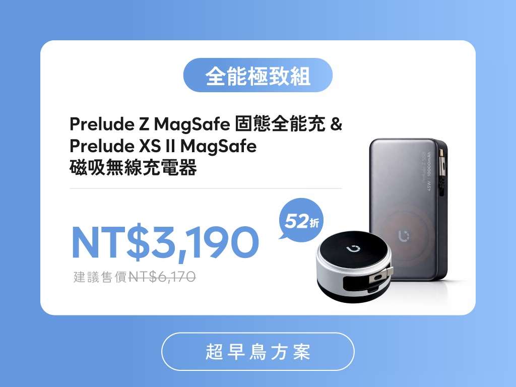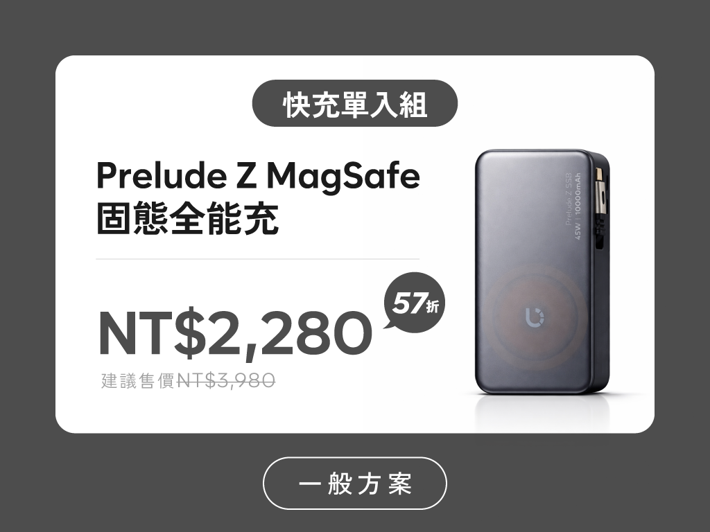 市售唯一支援 45W 快充自帶插頭的固態行動電源!最高同時可充 4 裝置,筆電、手機、耳機、Apple Watch 一顆搞定。