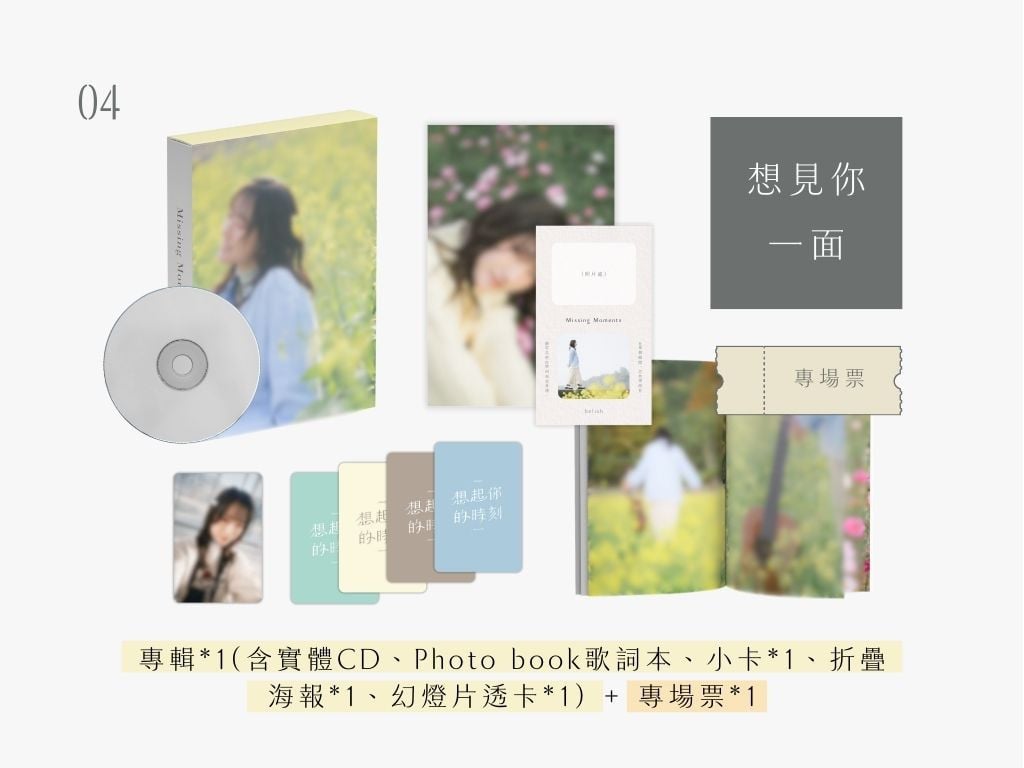 方案回饋內容|《想起你的時刻》實體專輯*1、專場票*1、BELISH親自設計Missing Moments即可拍*1