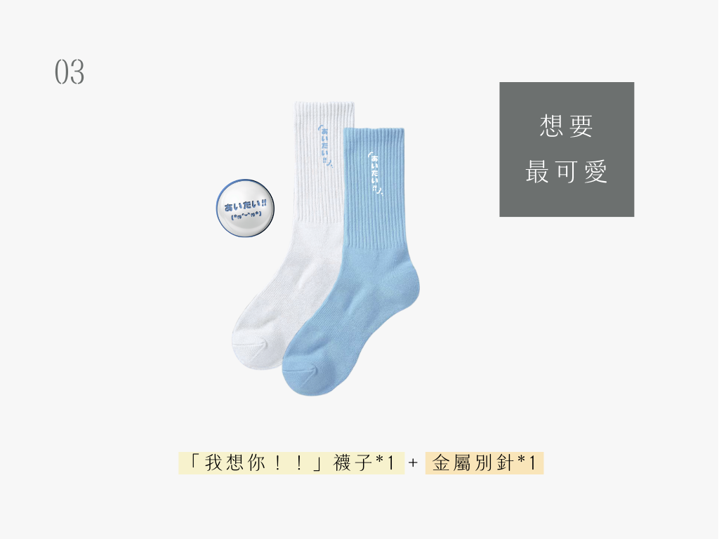 方案回饋內容|「我想你.ᐟ.ᐟ」襪子*1、金屬別針*1