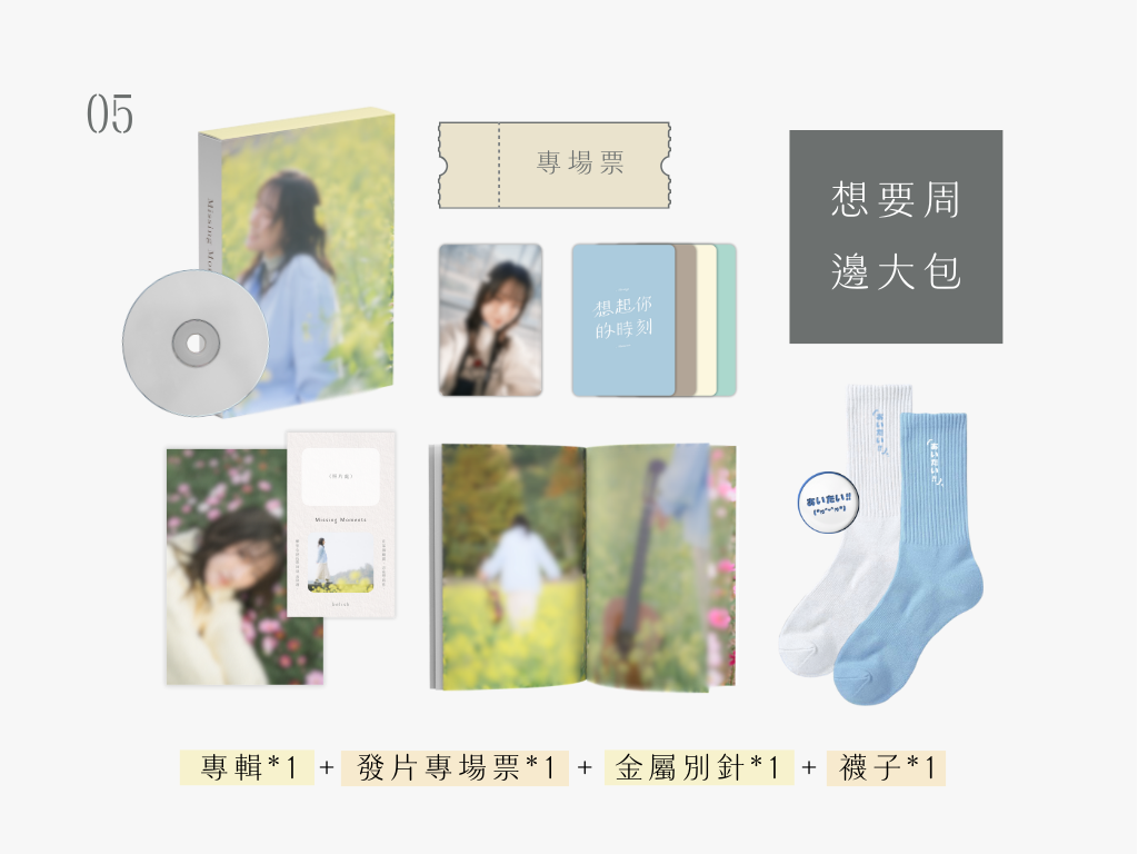方案回饋內容|《想起你的時刻》實體專輯*1、專場票*1、金屬別針*1、襪子*1