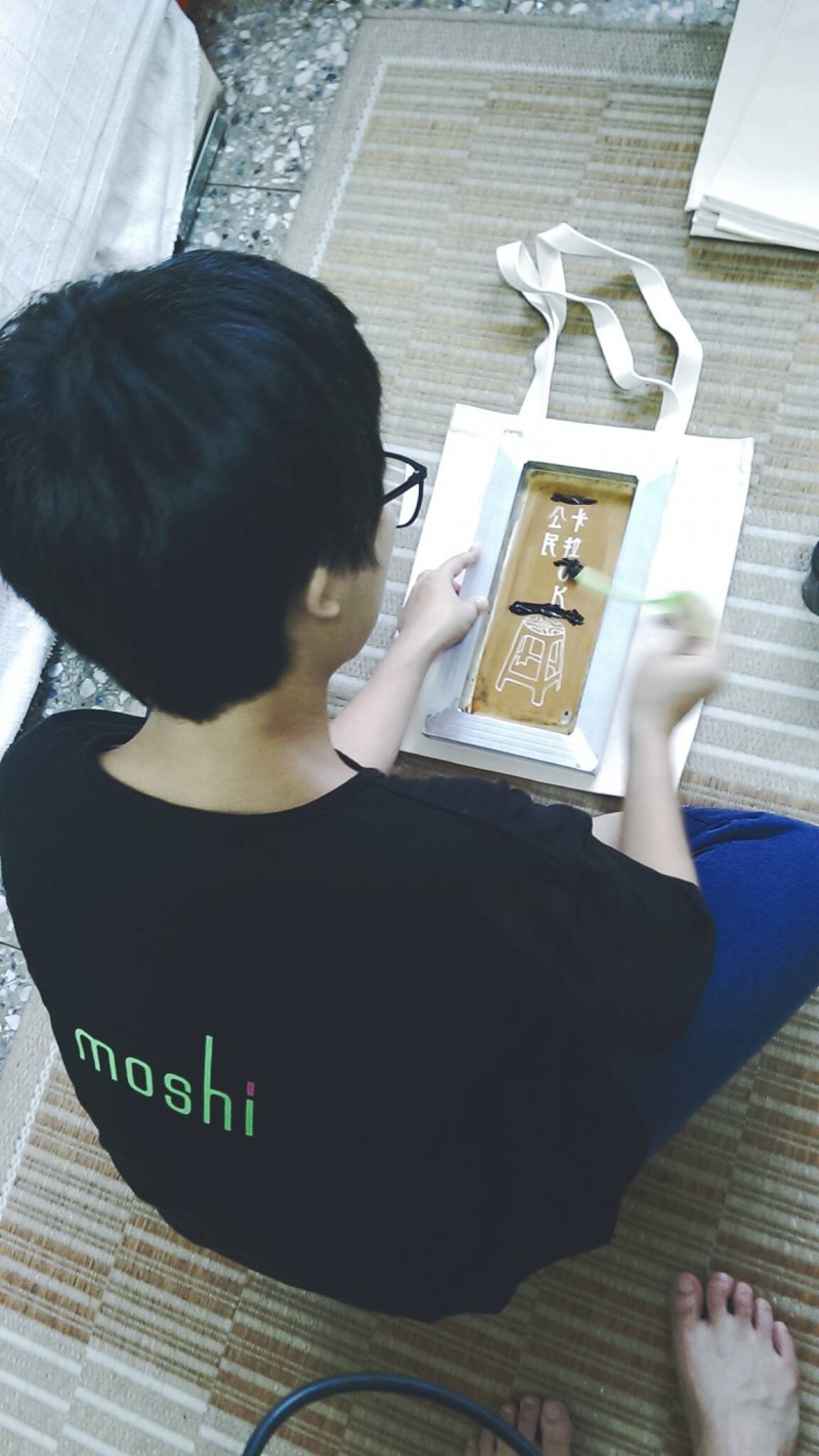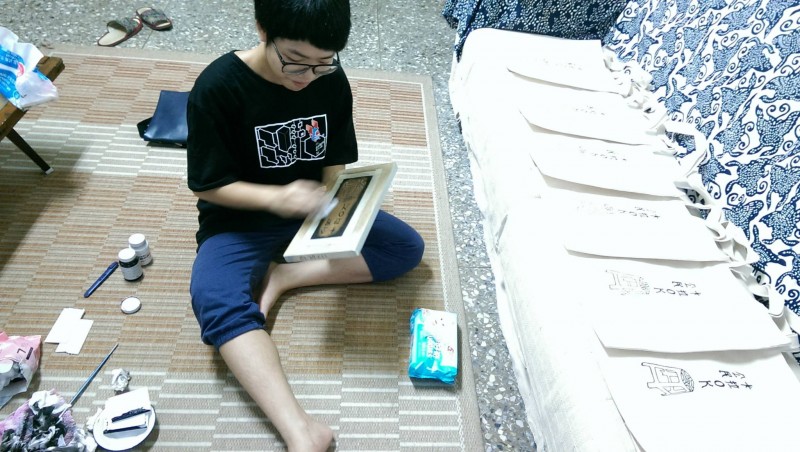 (4)將絹版和胚布袋分開,用濕紙巾擦淨絹版。