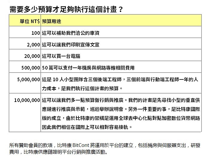 2. 比特康目前暫定一百個電子簽章為比特幣0.005元(約新台幣五十元)。