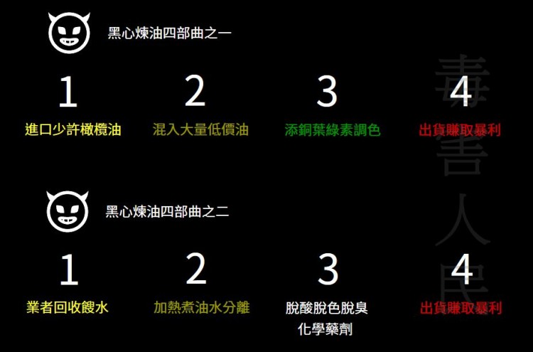食安問題,已經嚴重影響國民健康與民生經濟,不法商人為賺取利潤,炮製黑心食品,為了賺錢不擇手段,造成市場劣幣驅逐良幣。過去的管理方法與制度,顯然已 經無法解決今天所爆發的危機。