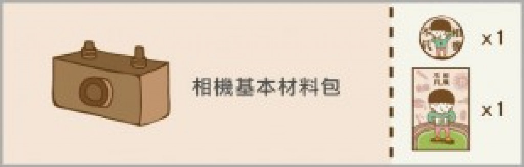 紙相機製作材料包一份+徽章兌換券一張+感謝卡一張