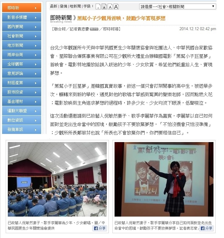 《黑道小子巨星夢》在少年觀護所試映,師生們無不熱淚盈眶,佳評如潮。