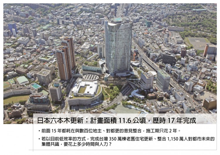 傳統的都更模式,通常是開發商先選地、擬定都更計畫後,再逐家逐戶地溝通。一個典型的例子是日本的六本木更新:計畫面積