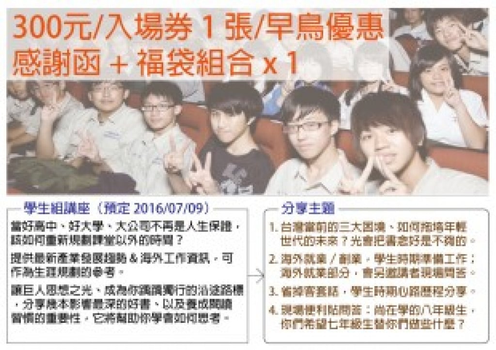 預計明年七月,我會回來舉辦三場講座、分享在矽谷闖關的冒險故事,同時現場發放福袋組合。三場講座的主題分別是: