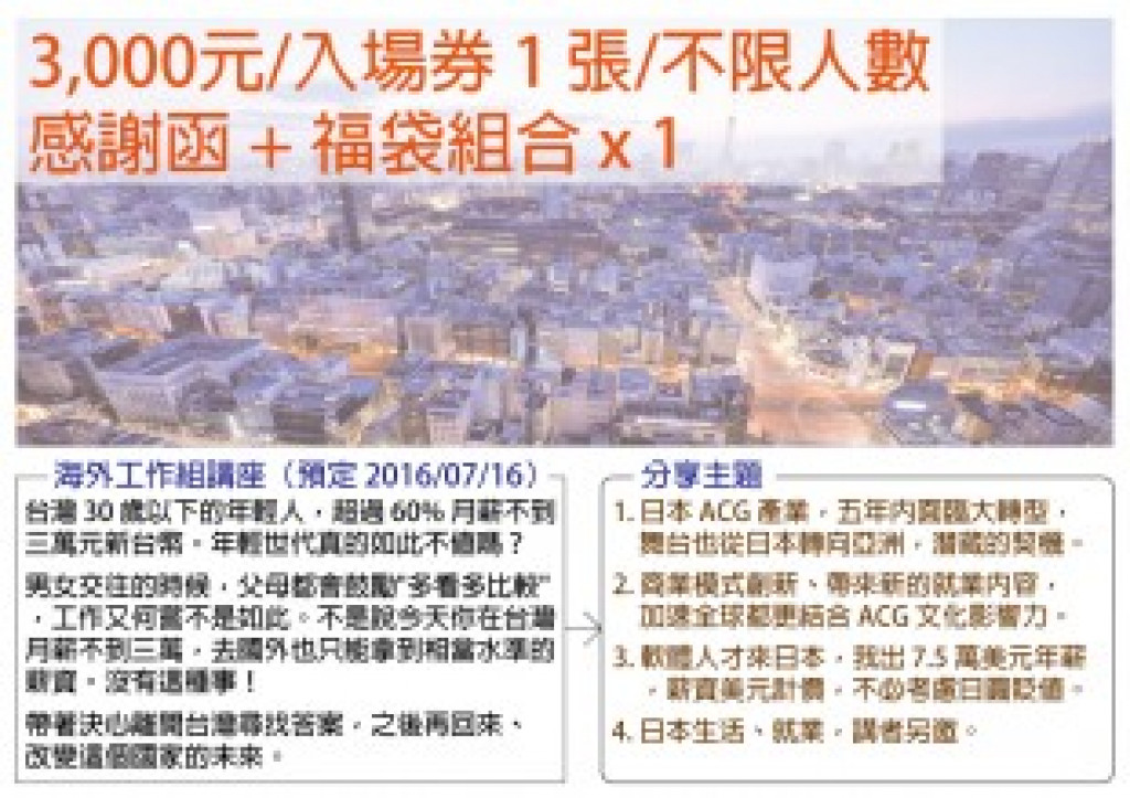 16 萬美元,軟體人才來日本、我給你 7.5 萬美元的年薪,其中 2/3 可以在東京過得還不錯,剩下 1/3 大約百萬新台幣,還可以匯回來當安家費。設計類人才則是